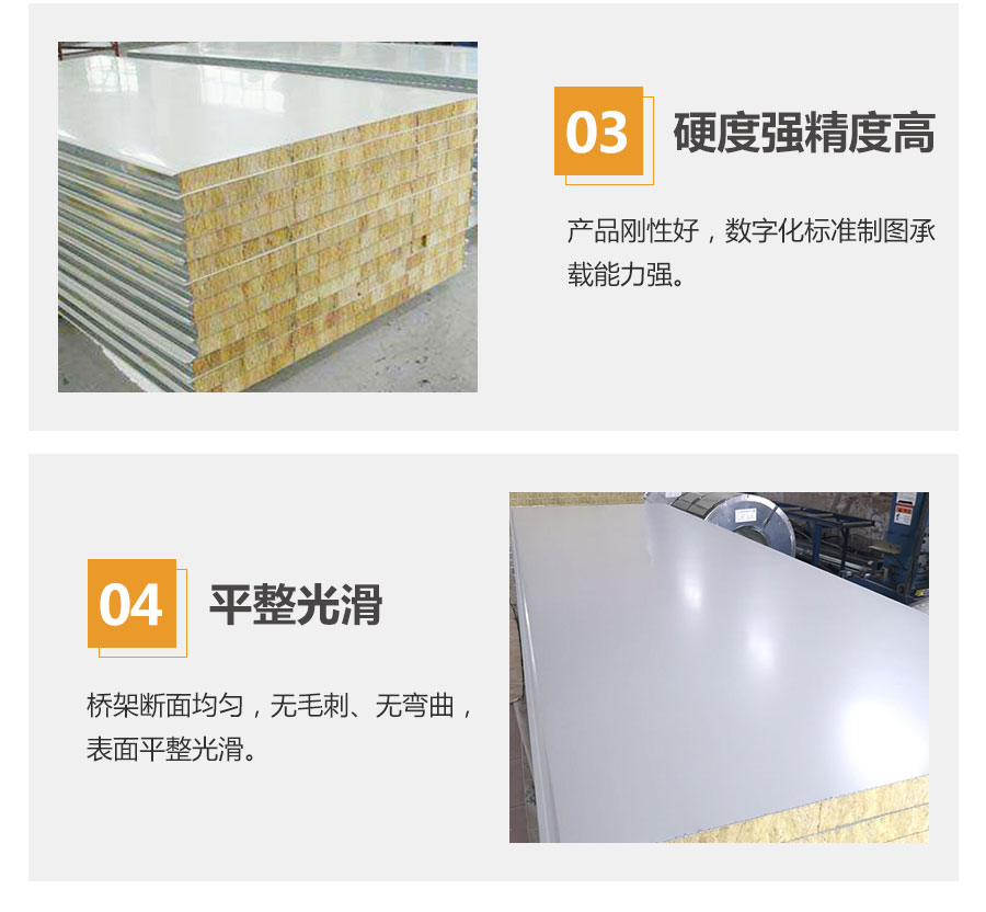 【適用領域】廣泛用于鋼結構廠房、簡易活動房、冷庫的屋面、墻體以及空氣潔凈室的吊頂與隔斷。